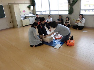 東淀川消防署の方が講師に来ていただき、実習しました。