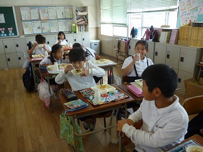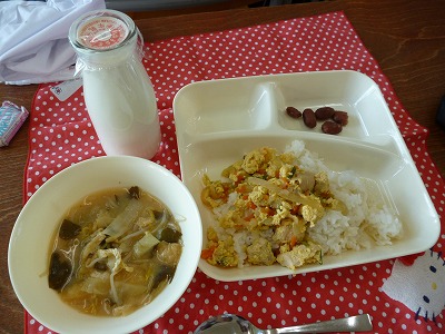 親子丼はご飯にたっぷりと具材をかけてもらって、子ども達はおいしそうにパクパクと食べていました。