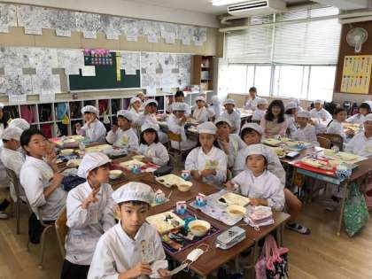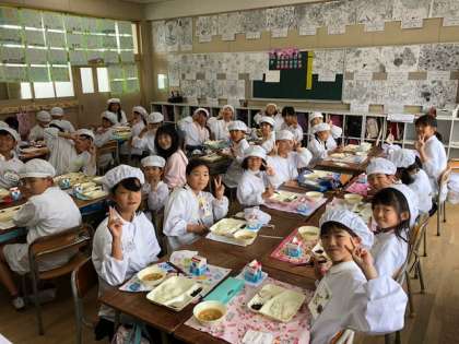 どちらの学年も少し緊張した感じでお行儀よく給食を食べることができていました。