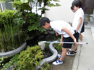 学校にある池の水を採取して、顕微鏡や解剖顕微鏡で調べました。