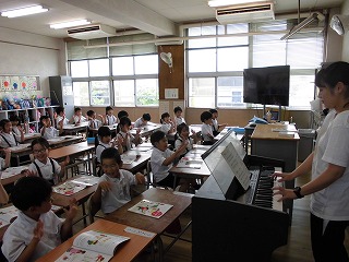 はじめに、みんなでじゃんけんぽんの歌を歌いながら隣の人とじゃんけんをしました。
