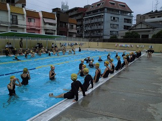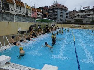 水泳では、バディと呼ばれるペアを決めて学習します。