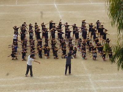4年生は、手首にカラーのリストバンド、黒色のTシャツを着て、本番さながらの練習をしていました。