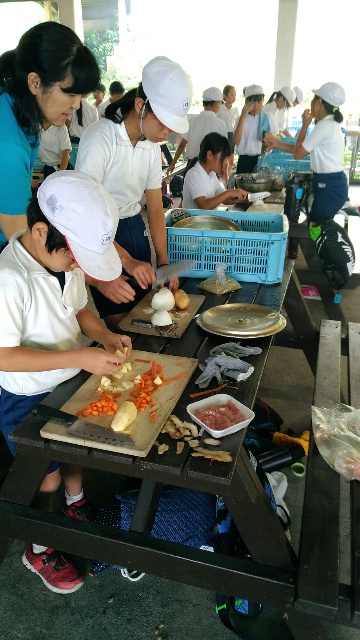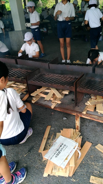 火おこし担当と材料を準備する方に分かれて作業しました。