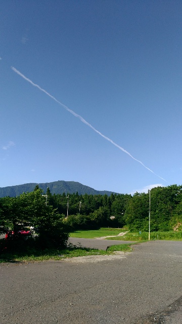 今日はよい天気です。空には、飛行機雲がかかっていました。