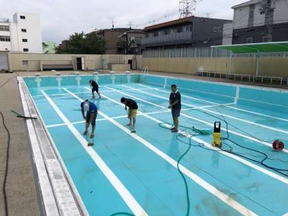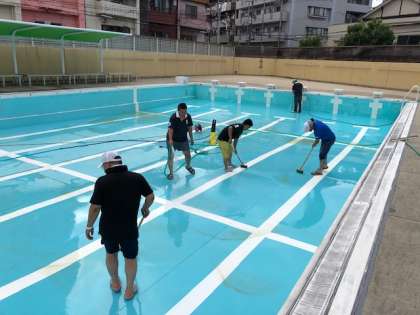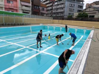 そのために、本日暑い中、地域のみなさんがプール掃除をしてくれました。