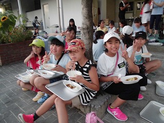 地域・PTAにみなさんにサラダを作っていただきみんなで食べました。