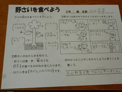 野菜についての学習で、自分たちが普段食べている野菜が花なのか、葉なのか、茎なのか、実なのか、根なのかをみんなで考えました。