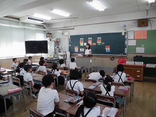 今日は、東淀川区内の栄養教諭の先生から「すききらいしないでたべよう」をテーマに学習しました。