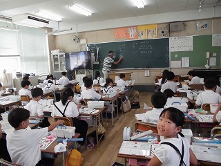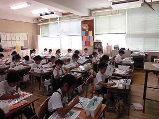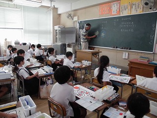 絵の具を使って、色の明暗を考えて作品を作りました。