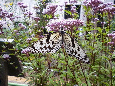 昆虫館の中にある「放蝶園」です。たくさんの蝶々が飛び交っていました。