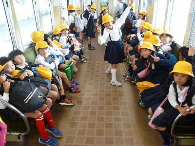 帰りの電車では、箕面駅から石橋駅までは豊新小学校で1両貸切状態でした。