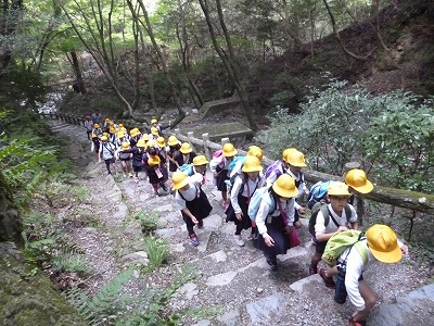 う回路で滝を目指しましたが、上り坂に下り坂、長い石段とみんな苦労しました。