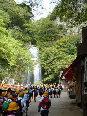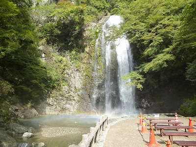 う回路を抜けて遊歩道の戻りしばらく進むと、目の前に「箕面の大滝」が現れました。