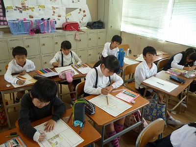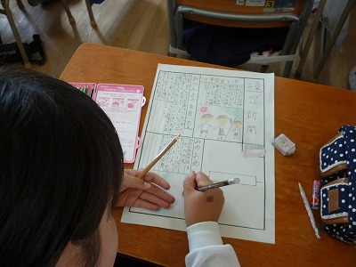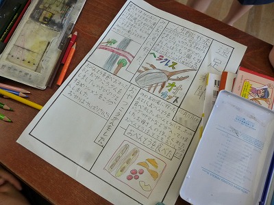 昨日の記憶がしっかりと残っているので、子ども達は「滝」「昆虫館」「お弁当」「チョウチョ」「ヘラスレスオオカブト」などど、すぐにテーマを決めて、絵と文章を書いていきました。