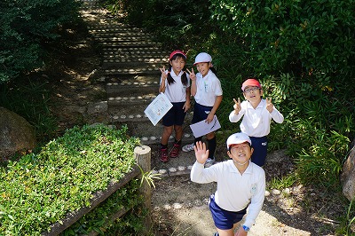 先生から諸注意を受けて、広い公園内を班ごとにオリエンテーリング(クイズラリー)をしました。