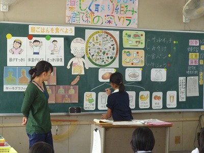 めあては「朝食のはたらきを知り、バランスのよい朝食をとろう」でした。