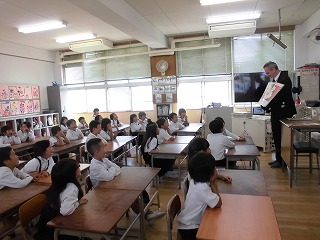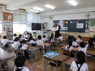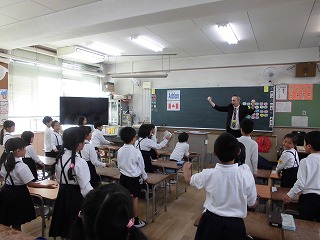 自己紹介の後、あいさつや好きな色なども英語で表現しました。