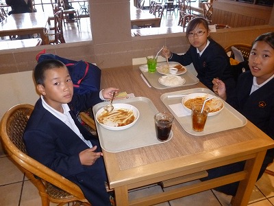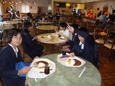 カレーにパスタ、ピザなどグループでお店を選んで食べていました。