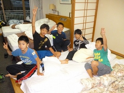 合歓の郷は、朝、雨が降っていたようで、朝の体操は室内だったそうです。