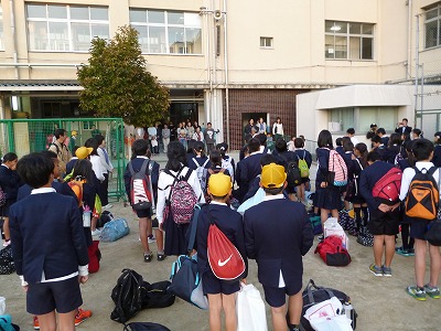 予定より10分ほど早く、6年生が修学旅行より帰校しました。