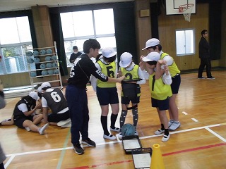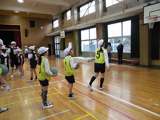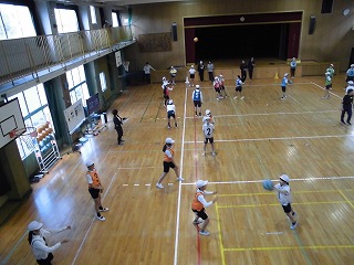 たくさんの先生が見守る中がんばってバスケットボールをしました。