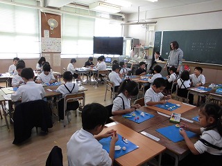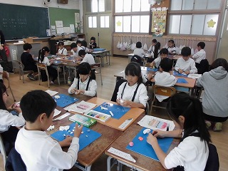 チョコレートやいちご、サクランボにアイスクリームなど自分で考えた飾りを絵の具で練りこんで完成させていました。