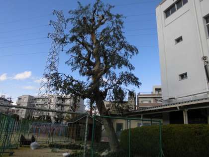 大阪市の園芸班の方々に来ていただき、高い木々の枝の剪定を行いました。