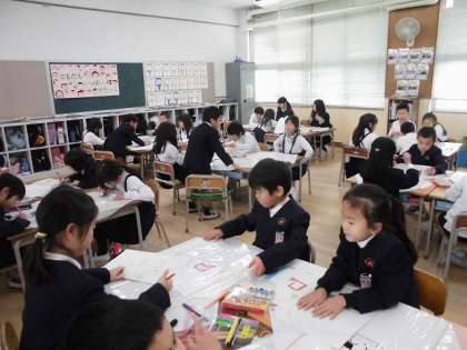 各班で譲り合って、ペンを使っていました。