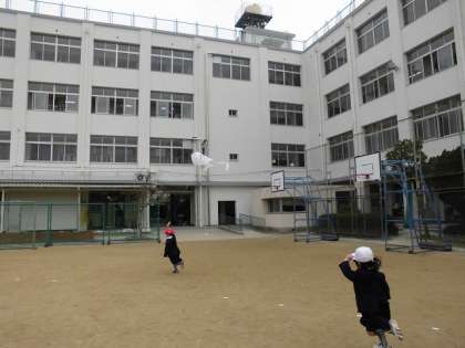 先日作ったぐにゃぐにゃダコを使って、凧あげをしました。