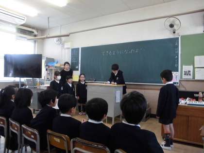 国語の音読、漢字、体育のなわとびなど発表していました。