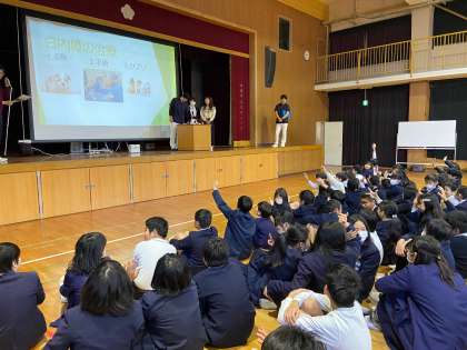 クイズやプレゼンテーション、ビデオでの紹介や漫才形式など、様々な手法で教えていただき、6年生の子どもたちはとても興味深そうに参加することができました。