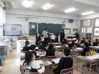 たしざんの勉強で、文章が難しいときに、みんなで前に出てきて考えていました。