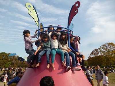 昼食後は、芝生広場の遊具で2時まで存分に遊びました。