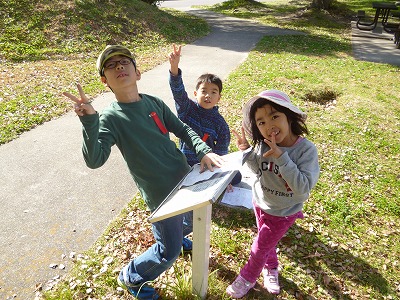 10時30分から12時まで、親子で北へ南へ、東へ西へと園内を記念碑の場所を示すマップを見ながら探し歩きました。