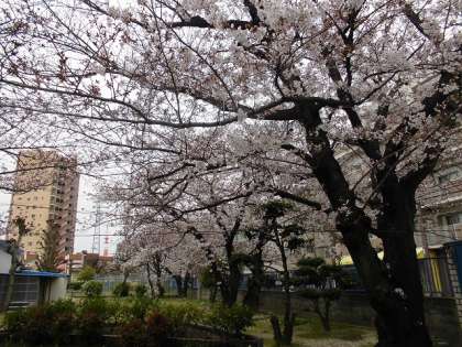 桜の花が咲き、ハナカイドウがかわいくサクランボのように咲いています。