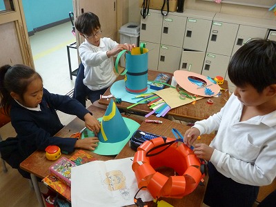 2年生 とてもカラフルな帽子つくり (11月18日)