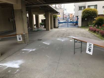 おはようございます。雨天の中の配付日となります。受付場所を移動しました。校内へは正門からの一方通行です。繰り返しになりますが、ご理解ご協力ください。