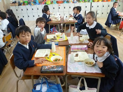子ども達も普段は食べない料理でしたが、1口食べてみると「おいしい!!」といって、おかわりにもたくさんの子どもが手を上げていました。