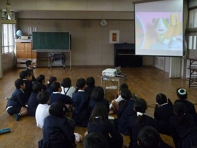 今日は教材DVDを使用するために多目的室で授業を行いました。