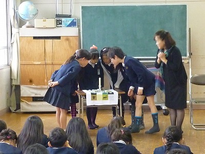 読書の炎を、みんなが願いを祈っている中で、12月生まれの子ども達で消しました。