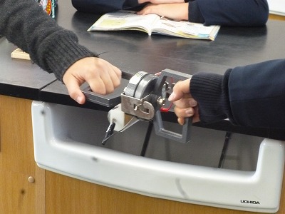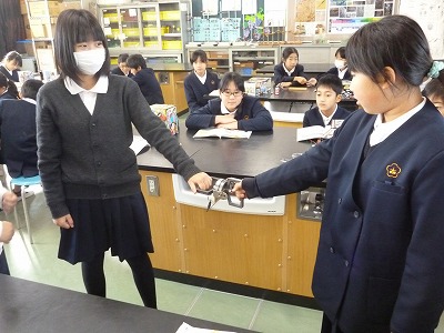 5年2組が理科室で「電磁石のはたらき」について勉強していました。