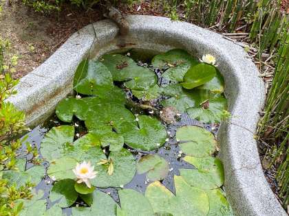 今朝、ふと職員室前の池に目をやると睡蓮の花がきれいに咲いていました。しばし白い花びらに目を奪われました。