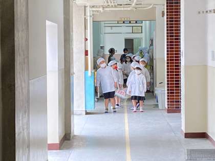 給食当番も大事な仕事です!みんなのためにがんばろう〜!