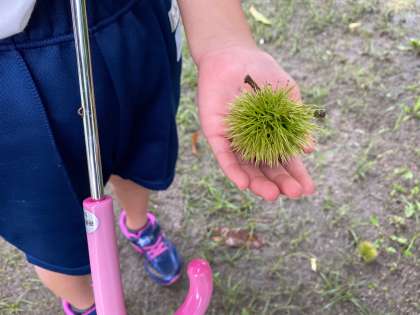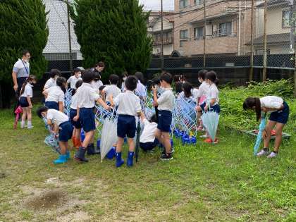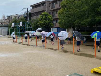 傘をさしながらでしたが、ひさしぶりのお外の学習を楽しんでいました。