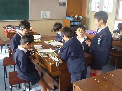 4年生がグループごとに相談しながら楽器の練習をしていました。