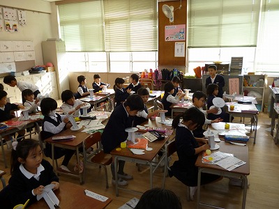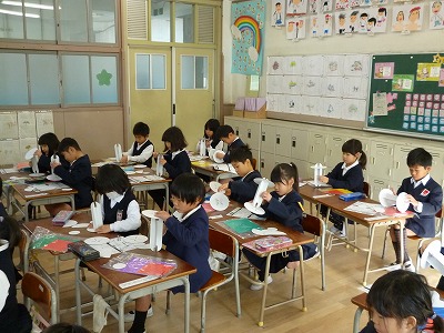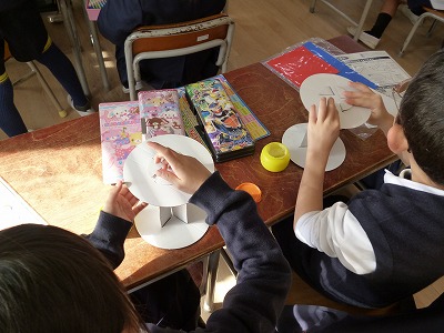 1年生が図工の時間に、新しい工作に取り組んでいます。