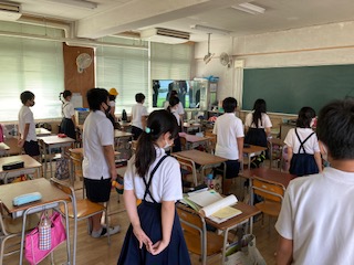 6年生は平和について学習しています。今日は、8月6日。広島に原子爆弾が投下されてから75年目になります。登校してきた6年生は教室で平和式典の中継をみました。真剣な表情で戦争の恐ろしさと平和の大切さについて考えていました。8時15分には、平和への願いを込めて黙とうを捧げました。