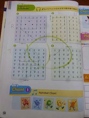 また、アルファベットや数字の発音を耳で聞いて、鉛筆でなぞっていくゲーム、最後は「B」と「V」の発音の違いを耳で聴き分けるアクティビティもしていました。