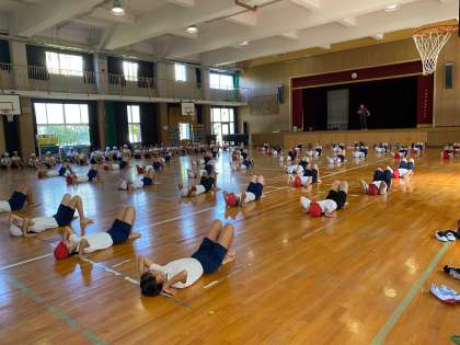 10月17日(土)のスポーツフェスティバルに向けて講堂で演技の練習がありました。